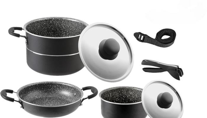 Topfset-Kollektion aus Aluminium mit hochwertiger Antihaft-Beschichtung. Kompakt verstaubar, modernes Design, hygienisch, zuverlässig, unempfindlich gegenüber Temperaturschocks und korrosionsfest….