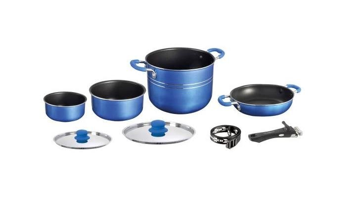 8-teiliges Alu-Kochset im 2-Tone Design. Mit Anti-Haftbeschichtung. Geringes Eigengewicht und schnelle Hitzeverteilung. Energiesparend. für alle Herdarten geeignet (außer Induktion) PFOA freie…