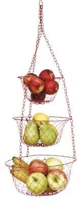 Hängekorb mit drei ineinandergehenden Körben aus Metall. Technische Daten: Größe der einzelnen Körbe: ø18 cm, ø23 cm und ø28 cm Höhe: ca. 75 cm.