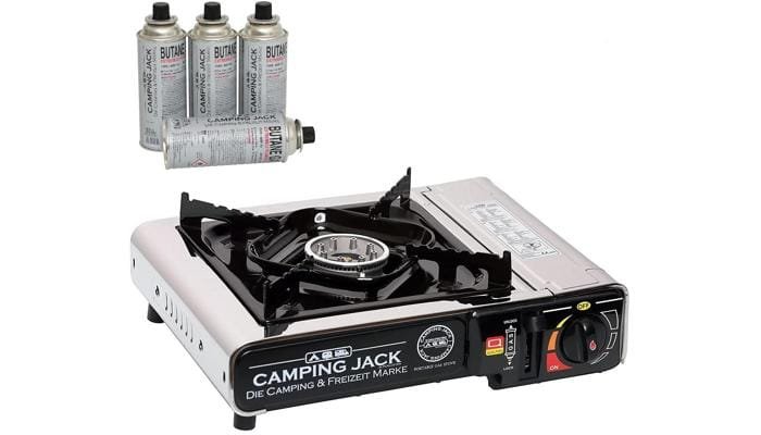 Camping Jack Kartuschen-Gaskocher + 4 Ventilkartuschen für deinen Campingurlaub