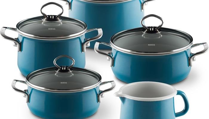 Riess Emaille Topfset, Familienset, 5-teilig, aquamarin Produktbeschreibung